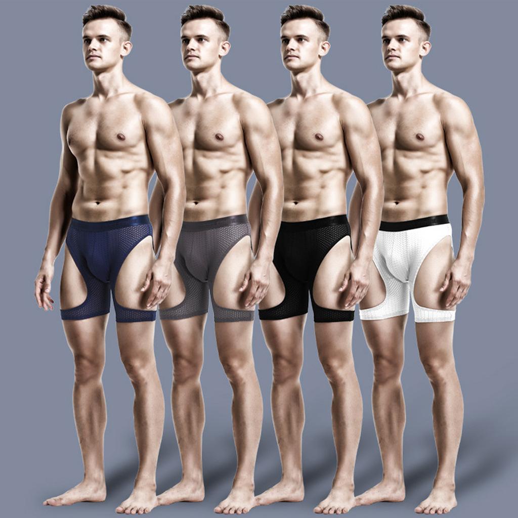 Men's Sports Running Underwear Anti-Wear Leg Ice Wire Hollowed Out Boxer Pants Extended Tight Boxer Pants