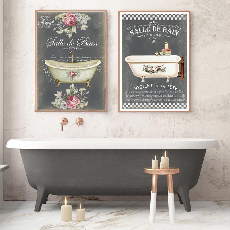 Vintage French Style Posters Bathroom Bathtub Canvas Painting Decoration Watercolor Floral Room Decor Wall Art Painting Pictures