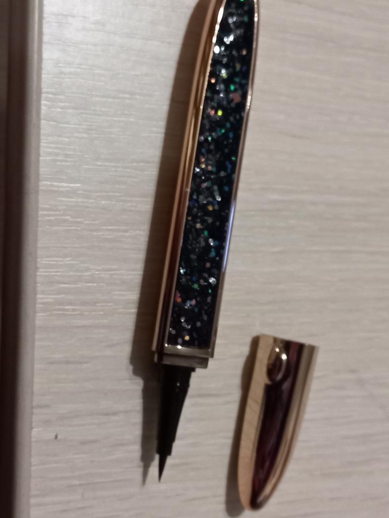 The eyeliner arrived intact, draws well. In test mode, I glued eyelashes to my hand, holds normally. I hope it will also hold normally on my eyes
