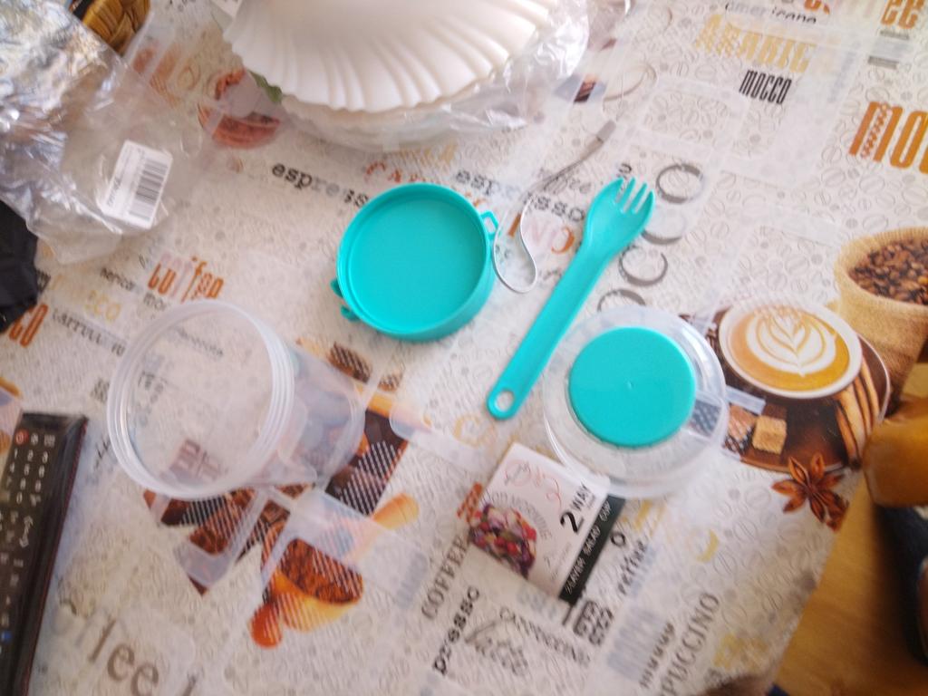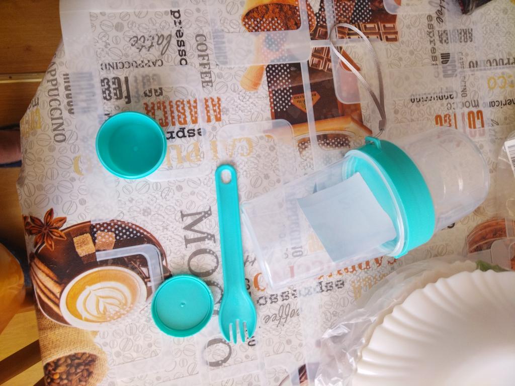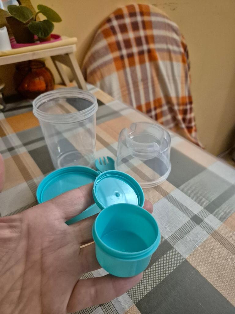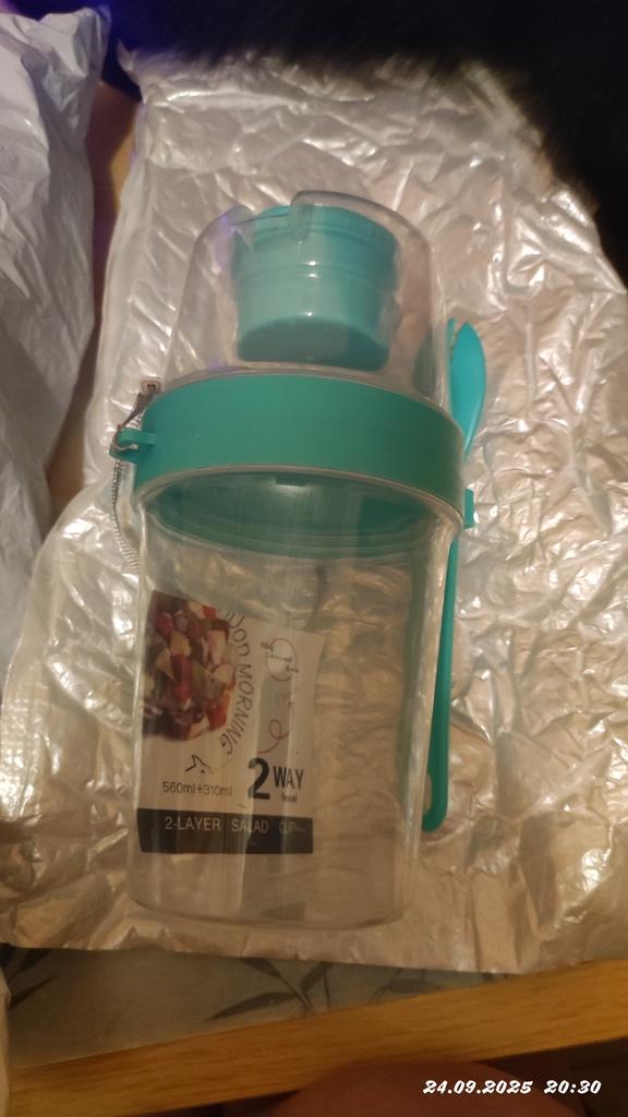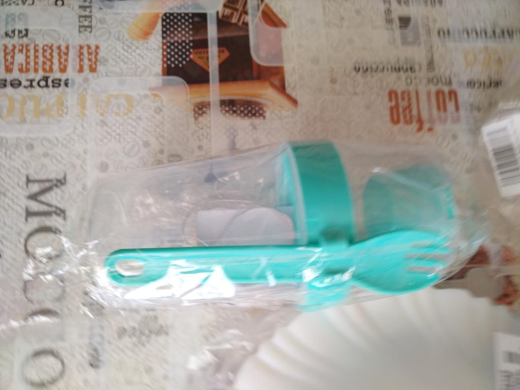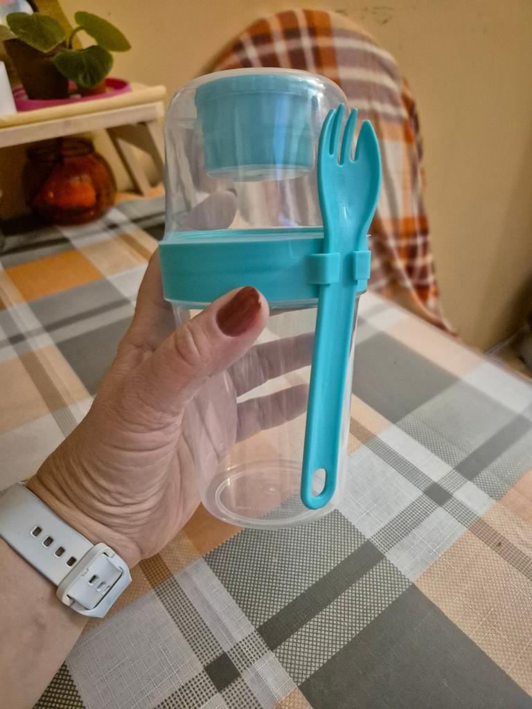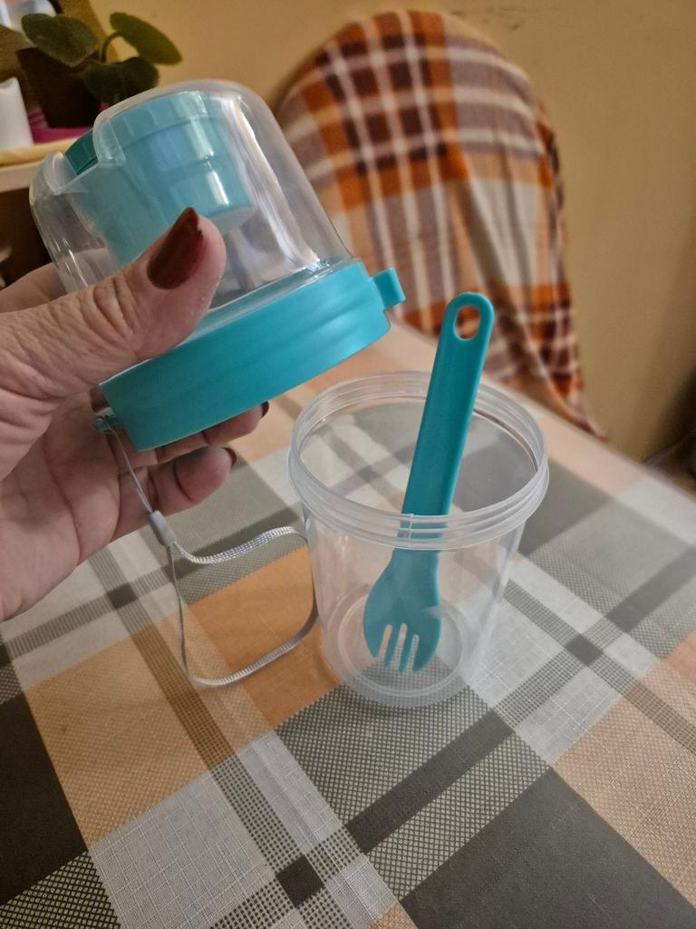 Nice thing. For salad or fruits. The plastic is sturdy, there is a separate container for sauce. The fork is a bit uncomfortable, but okay