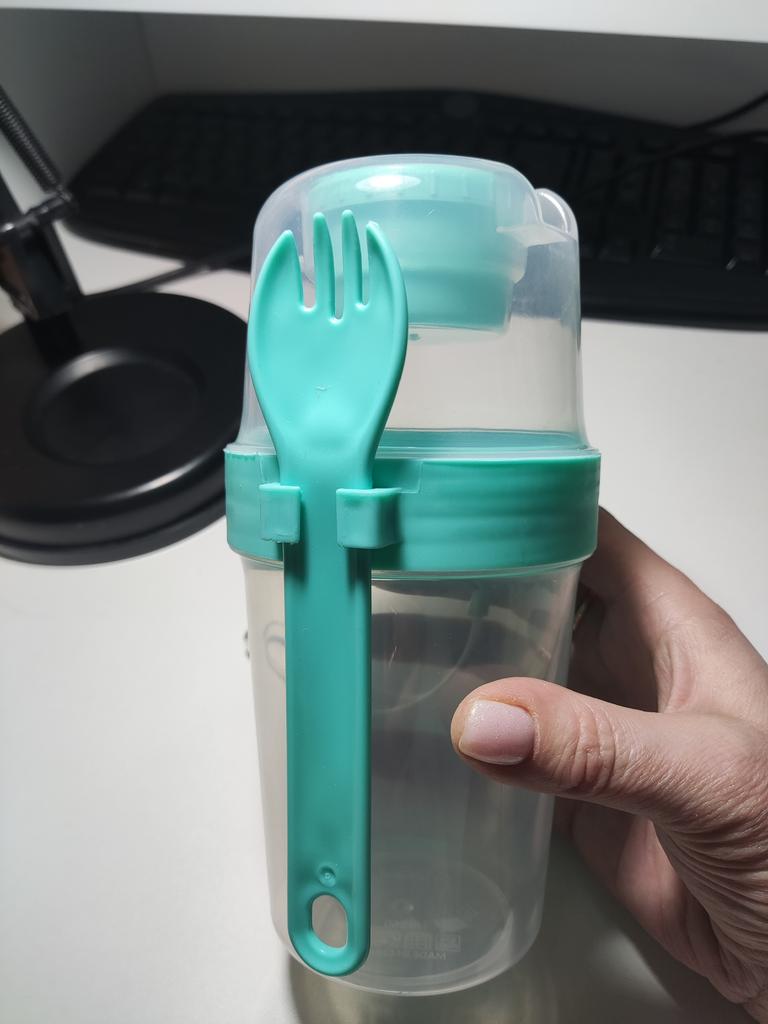 Excellent container. It's convenient that everything is in one place and the spoon-fork too . Ordered another one in a different color