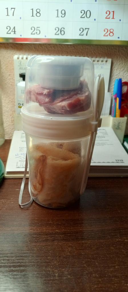 Cool and convenient that a small jar is built into the lid. Sauce or something else for a snack can be taken for one time. And you don't need to carry several containers with you