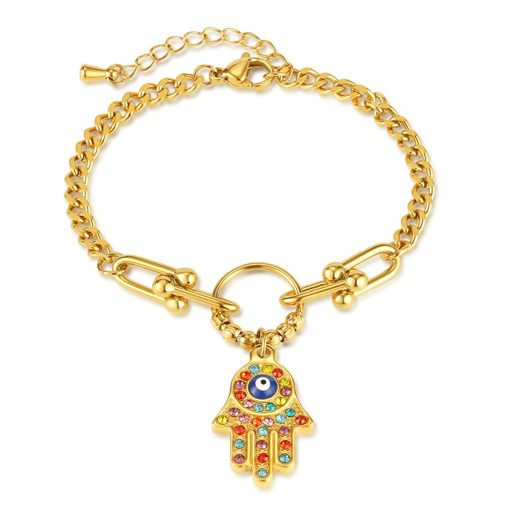 Retro Design Stainless Steel Color Zircon Palm Gold -Plated Bracelet For Women