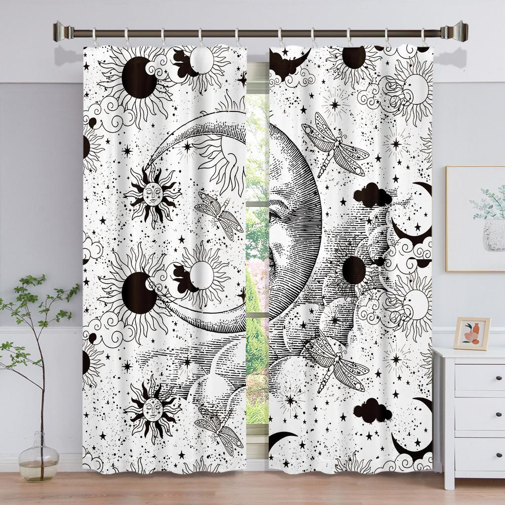 Gothic Galaxy Bedroom Decor Celestial Starry Witchy Mandala Diamond Teen Girls Women Living Room Window Drapes Fabric 2 Panels