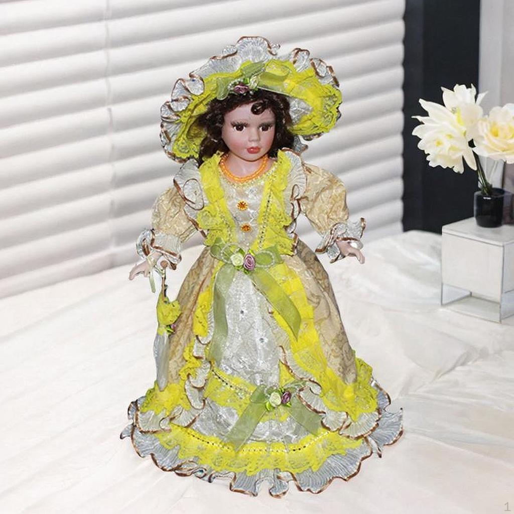 16inch Ceramic Doll with Hat and Hair Porcelain Beautiful Woman Miniature Figure for