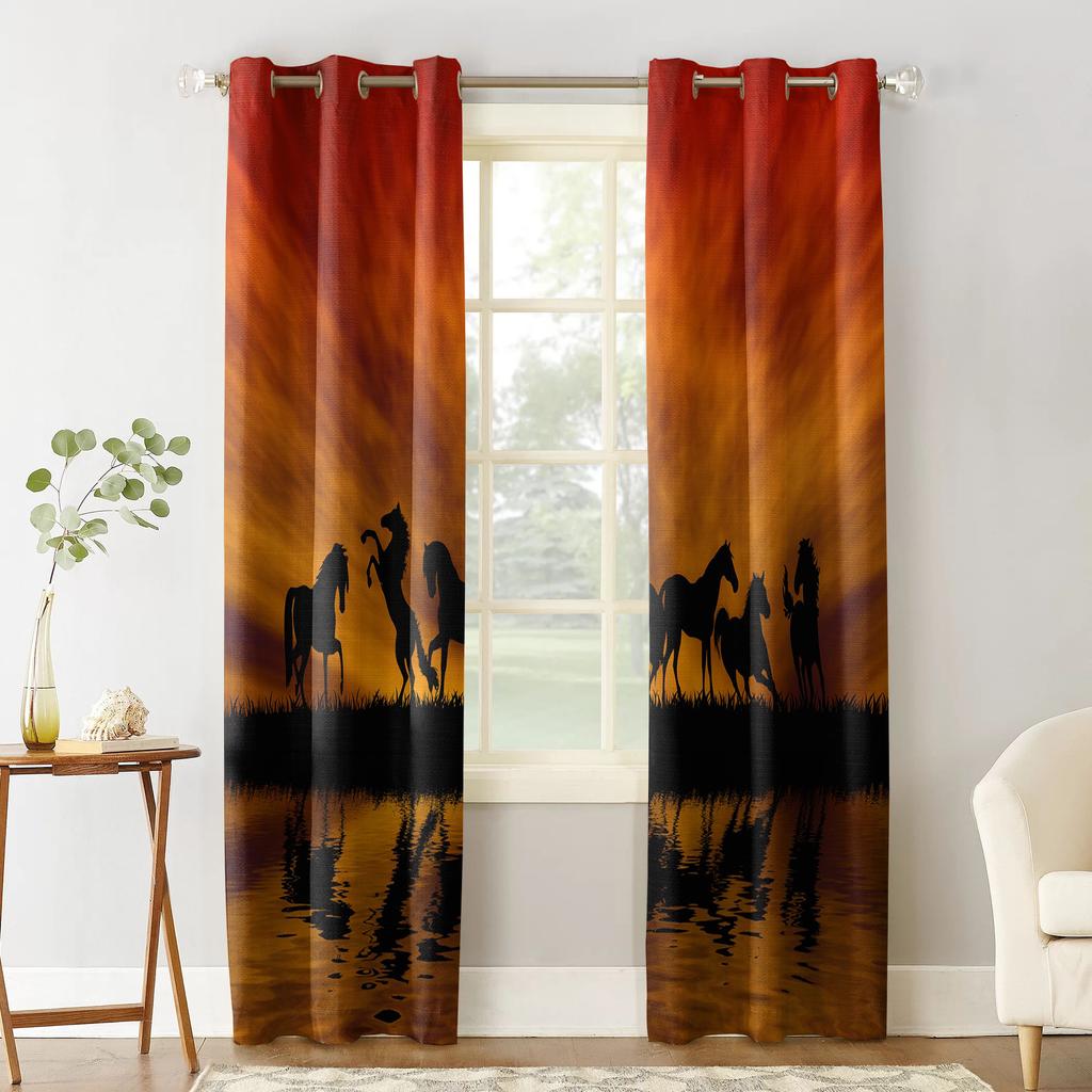 Horses Sunset Lake Scenery Window Curtains Bedroom Kitchen Decor Curtain Panel Window Curtains for Living Room