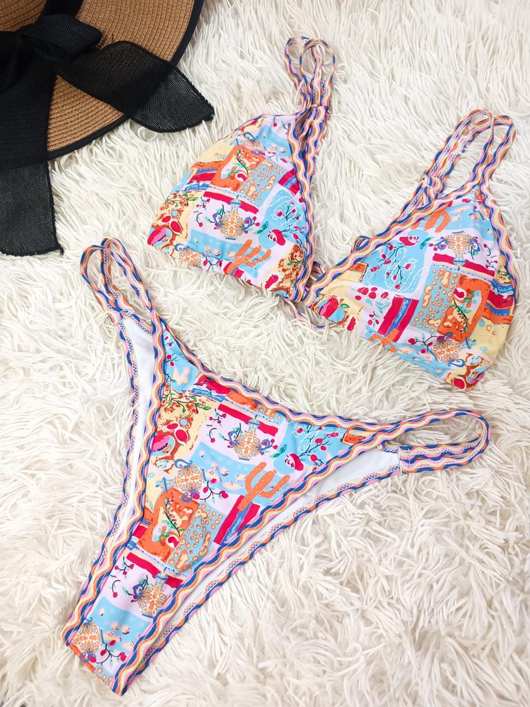 Sexy Printed Strappy Bikini Female Swimsuit Women Swimwear Two-pieces Bikini Set Brazilian Bather Bathing Suit Swim