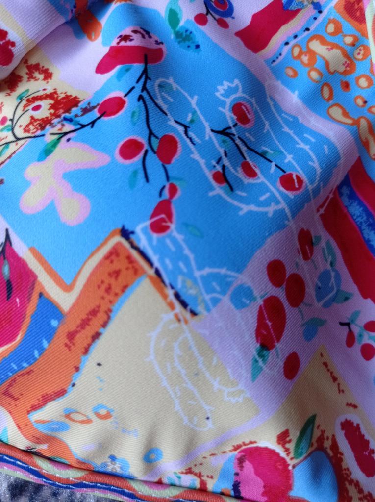 Cool swimsuit! I like it. The quality is excellent, the print is not boring, original. Size fits S to 42-44❤️
