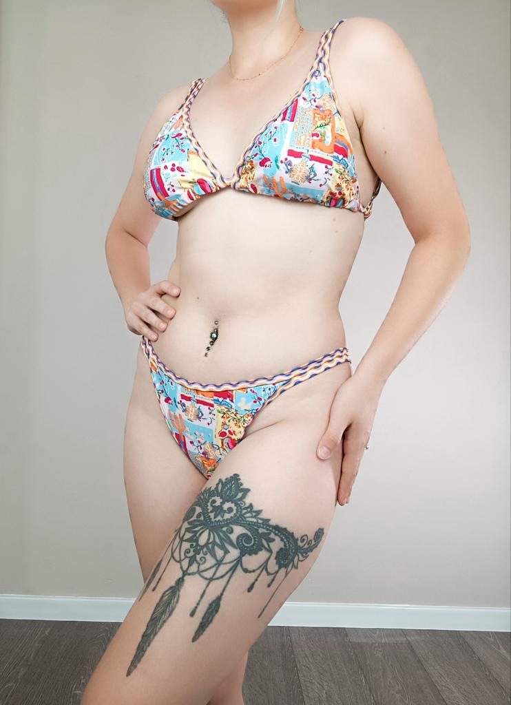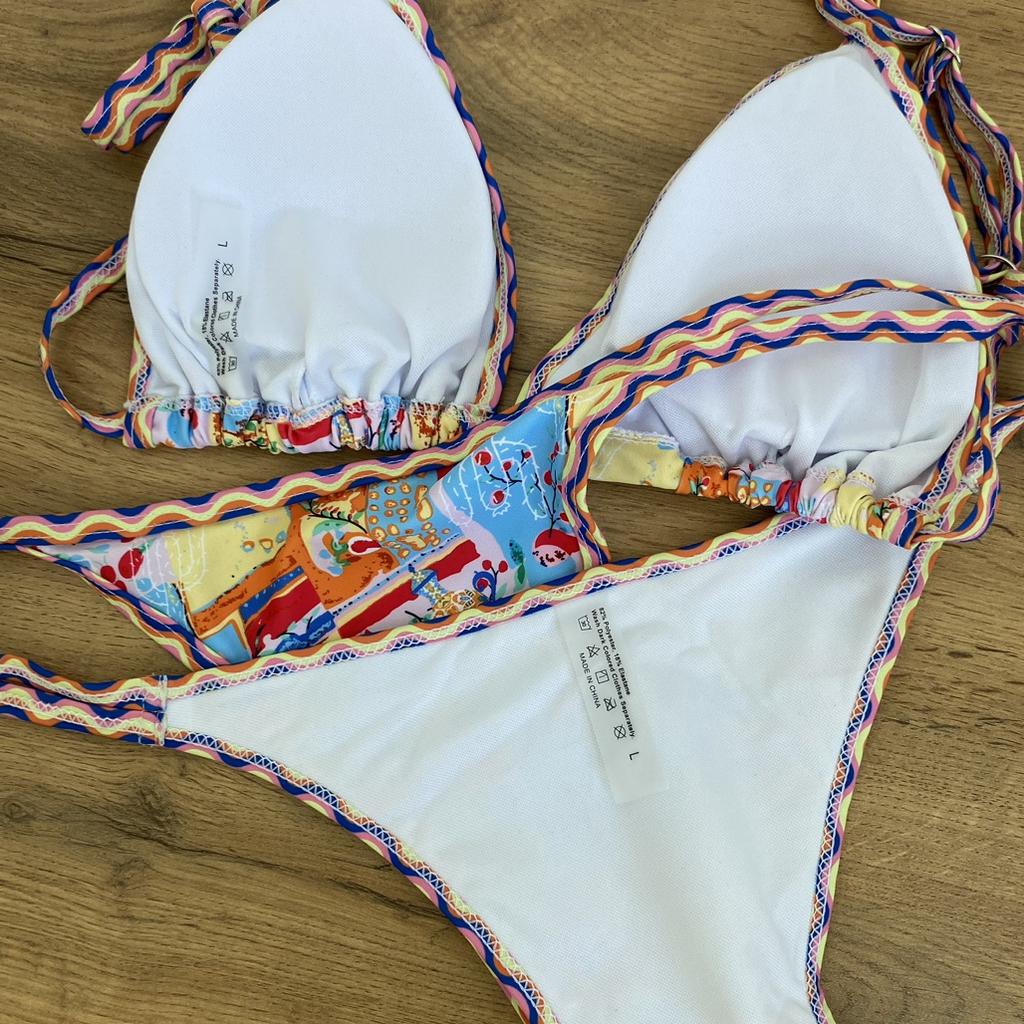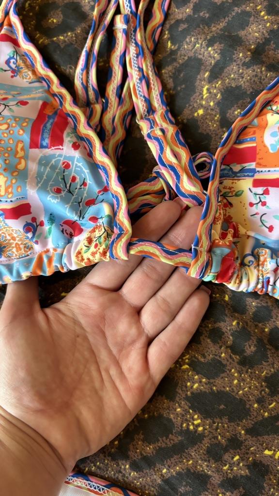 Bikini❤️ 😍😍 The bikini is really beautiful and the seams are absolutely perfect!!! I chose a size small and it’s perfect. I am an xsmall. My measurements are 70 cm for the waist and about 90 cm for the hips. Arrived in 3 weeks 🌈🌈🌈🌈 CONCLUSIONS Excellent value for money💯💯💯💯