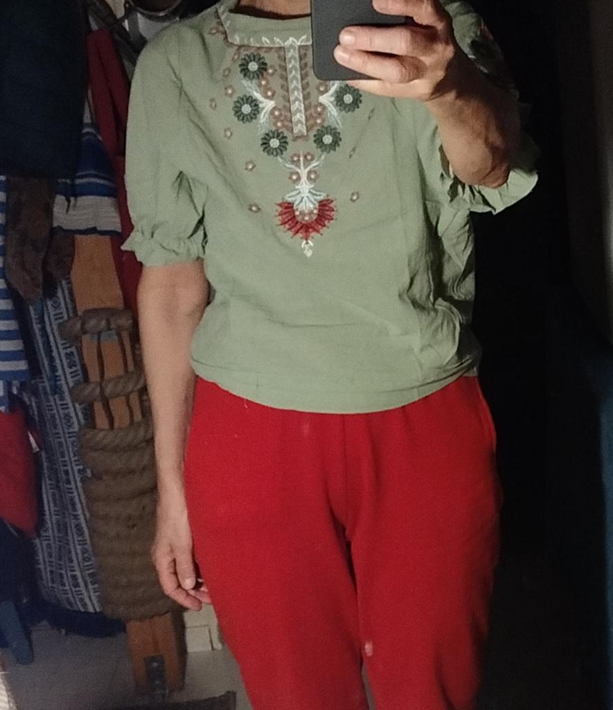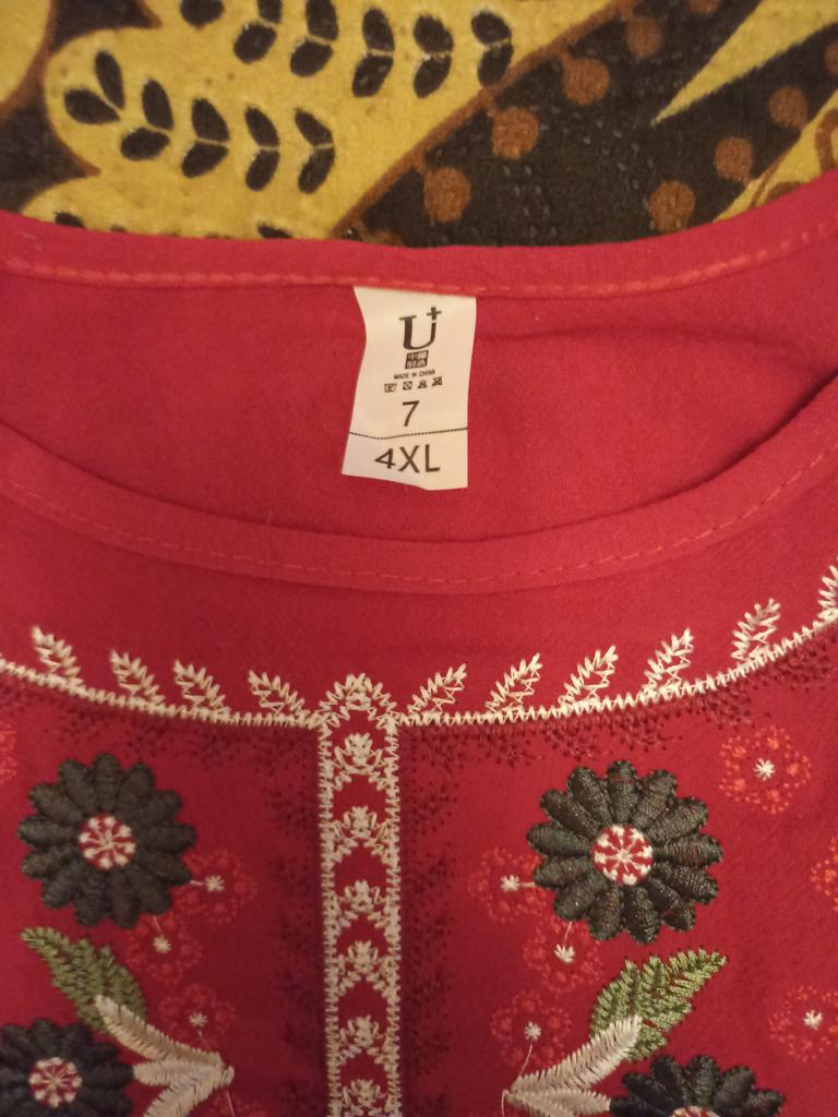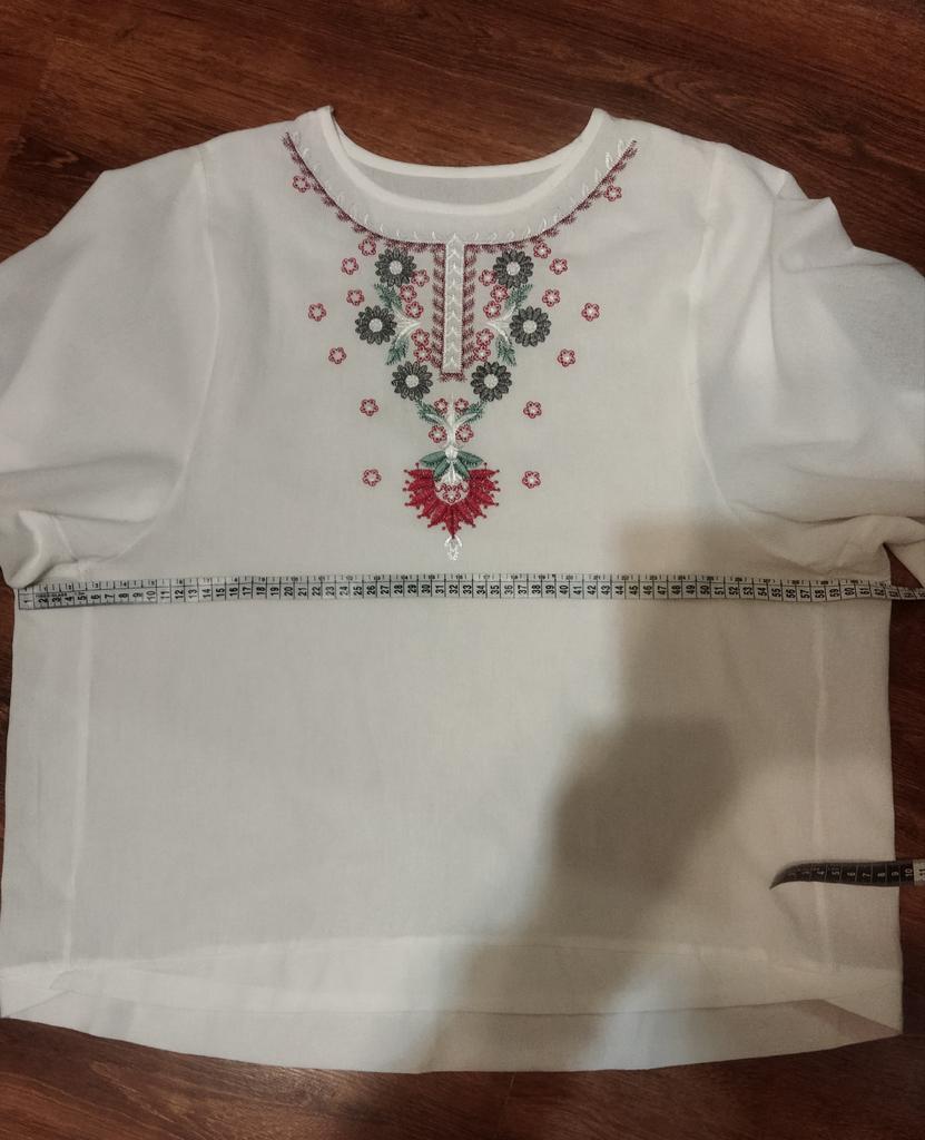 Horrible horror! Does not correspond to the description and size, although there are no identification marks on this product. This is not a blouse, this is a top. All the crooked seams are going. The belly button. Very short, the seams are crooked and everything is lopsided, the pattern is all screwed up on the front and the embroidery on the sleeves at the back, maybe the New Year had an effect. Outraged, money down the drain. I demand a refund, this so-called product is only for the garden to put on a scarecrow. And there were plans for the summer, it's a shame.