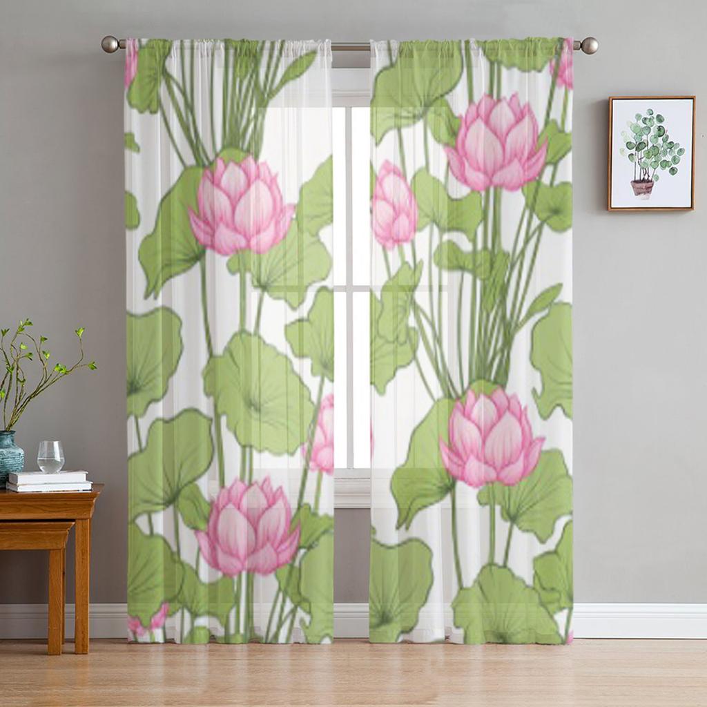 Seamless Pattern Background With Lotus Flower Chiffon Sheer Curtains for Living Room Bedroom Decor Window Voiles Tulle Curtain
