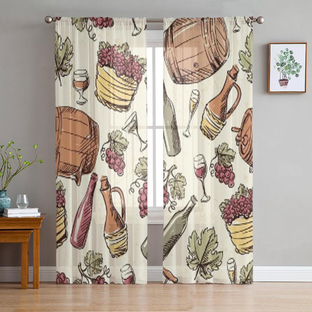Wine Vintage Sheer Curtains for Living Room Transparent Tulle Window Treatments Bedroom Kitchen Home Decor Veil Drapes