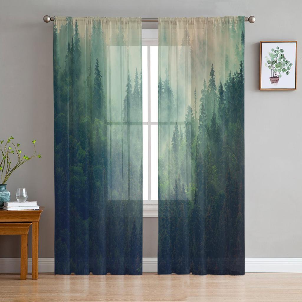 Luxury Tulle Curtains Fog Woods Fir Jungle Living Room Kitchen Chiffon Curtain Youth Bedroom Sheer Floor Valance Curtain