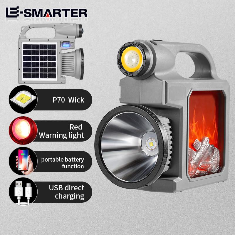 Simulated Flame Lantern Solar Rechargeable Searchlight Power Bank Function Portable Outdoor Camping Waterproof Emergency Light