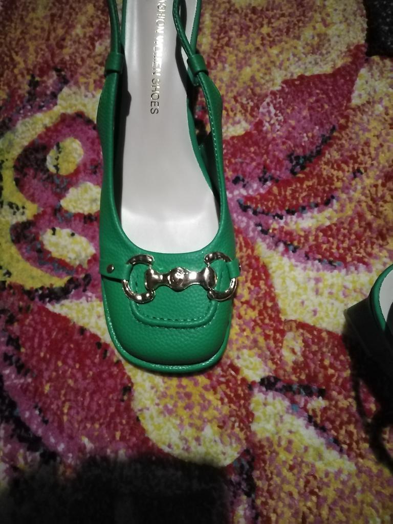 Women's Mid-heel 5.5CM Summer French Style Back Empty Female Thick Heel Square Toe Mary Jane Shoes Black Green Talon Femme