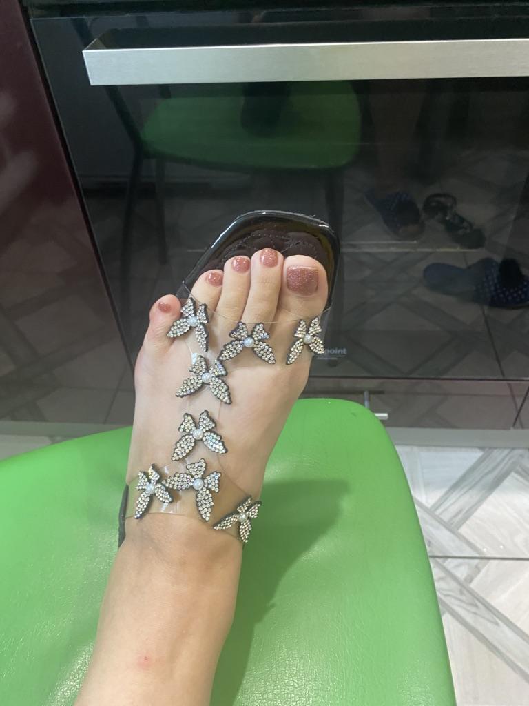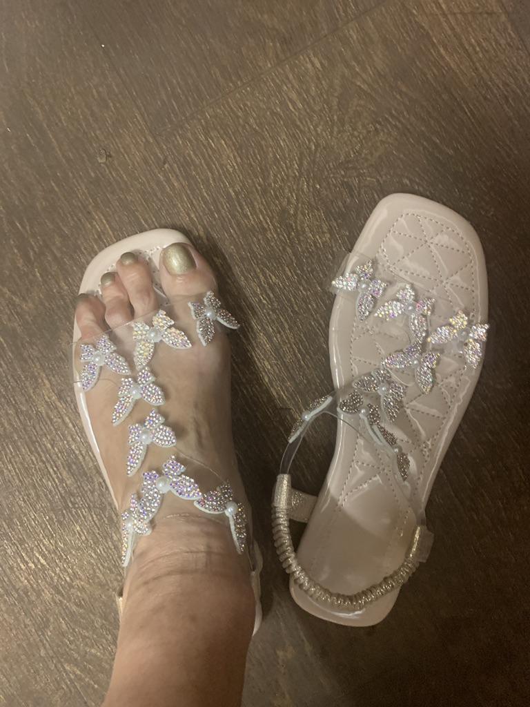 Women's Rhinestone Butterfly Decor Flat Sandals, Casual Open Toe Summer Shoes, Lightweight Elastic Band Sandals