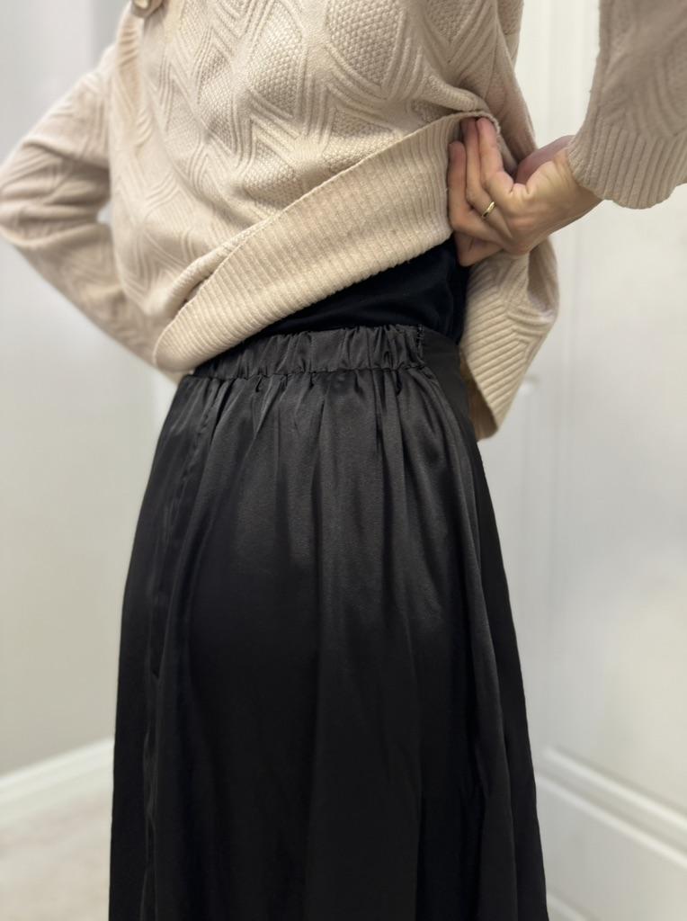 Women Maxi Skirt Silky Stain Loose Elastic High Waist Zipper Closure A-line Big Swing Pleated Solid