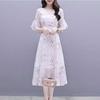 S-3XL Women Summer High-end Floral Chiffon Dress Short-sleeved V-neck A-line Evening Dress