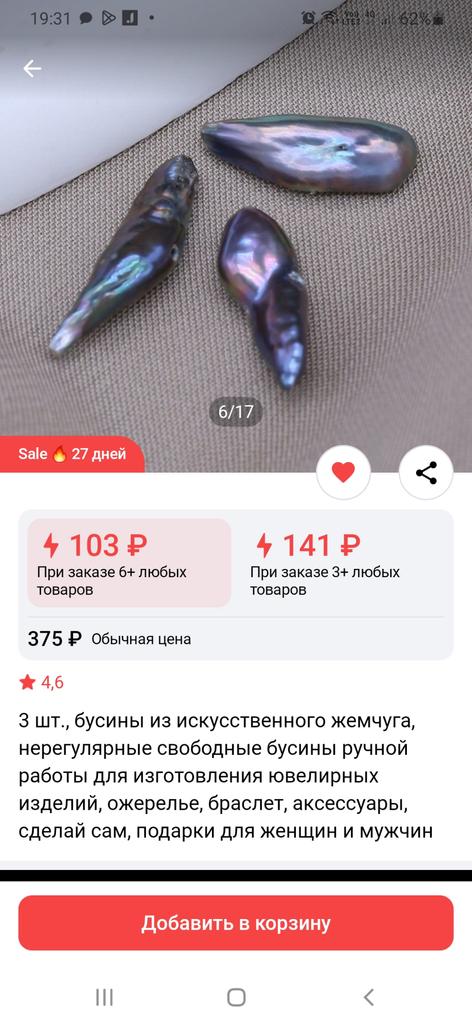 Received three pearls, one of them repaired with glue, all three with a small amount of nacre. The quality was not liked.