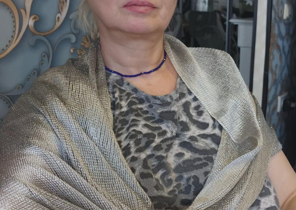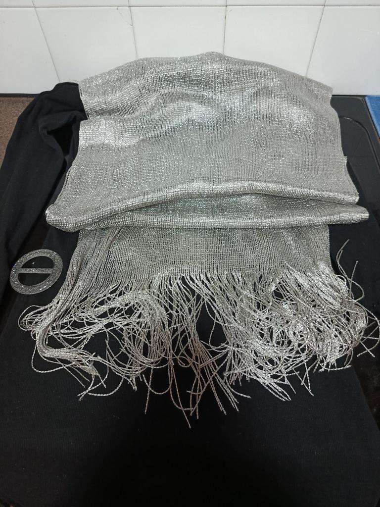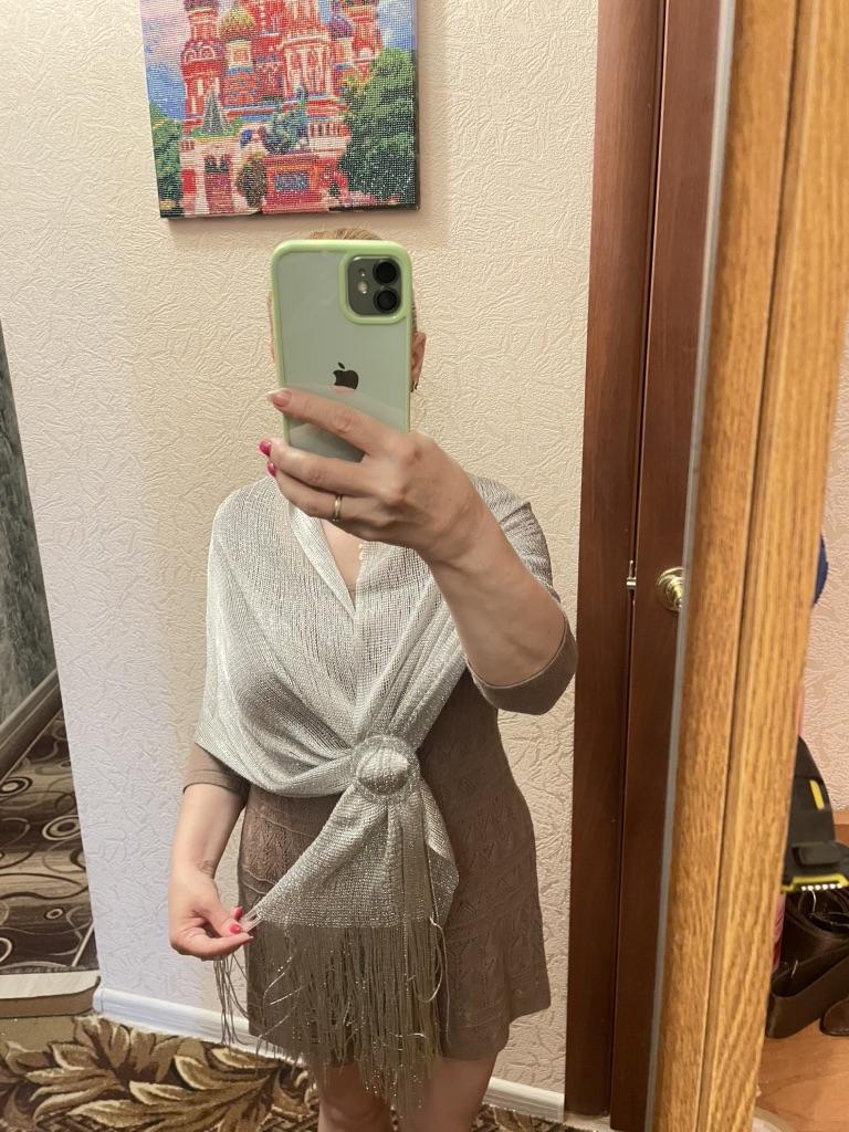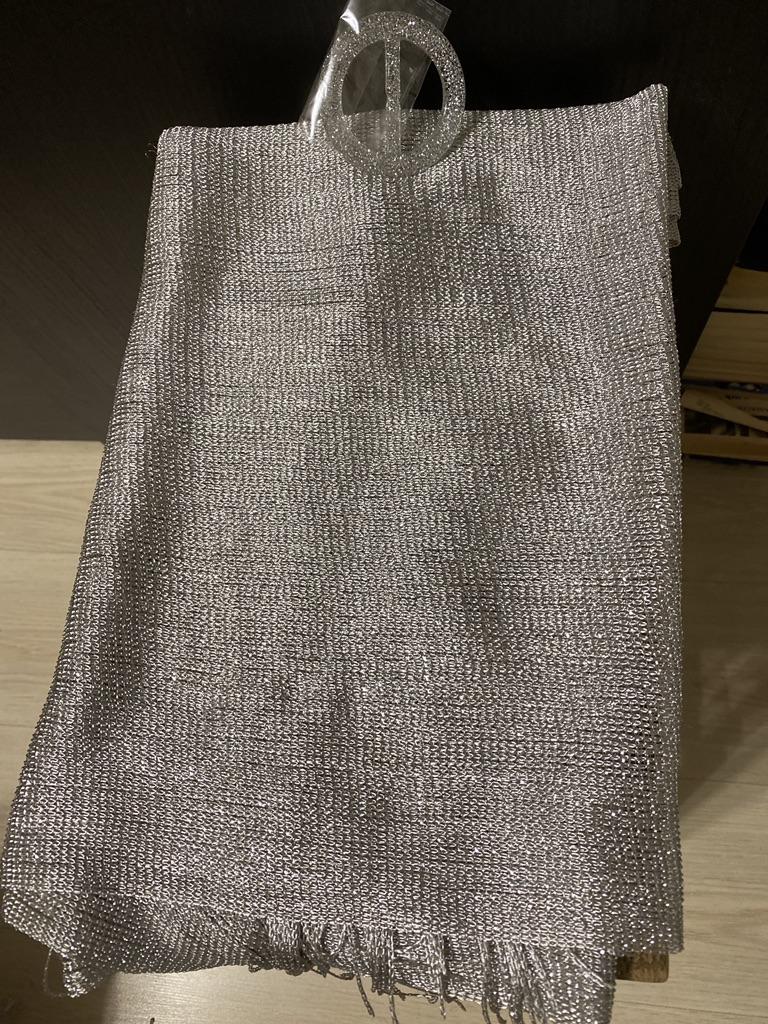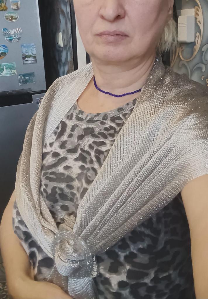 Shawl with lurex plus a buckle for convenience and beauty. I will definitely use it in my wardrobe. I also need to order another color. Thank you 🌹