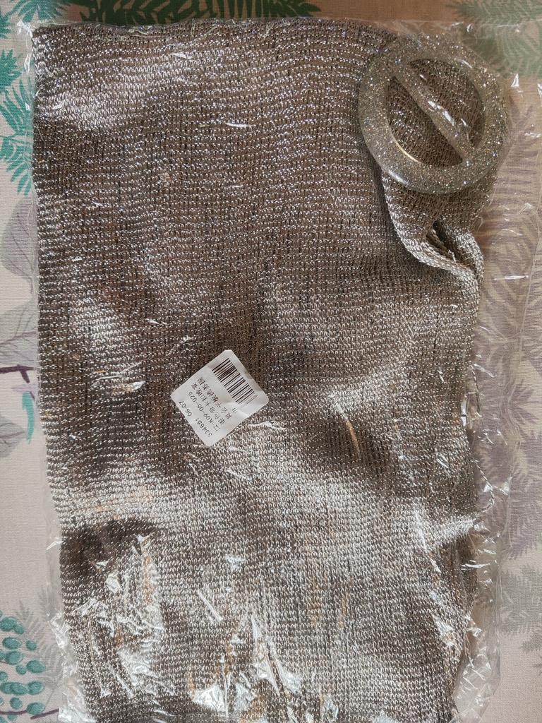 Excellent scarf, rather coarse thread with lurex, one fringe is defective, but I won’t reduce the stars, I’m thinking of picking up threads and hemming it Buckle by color, plastic thanks a lot