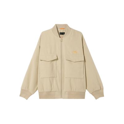 Li Ning Sports Trend Series Solid Color Zipper Stand Collar Versatile Breathable Loose Windbreaker Women Outerwear Sand-Khaki AFDV984-1