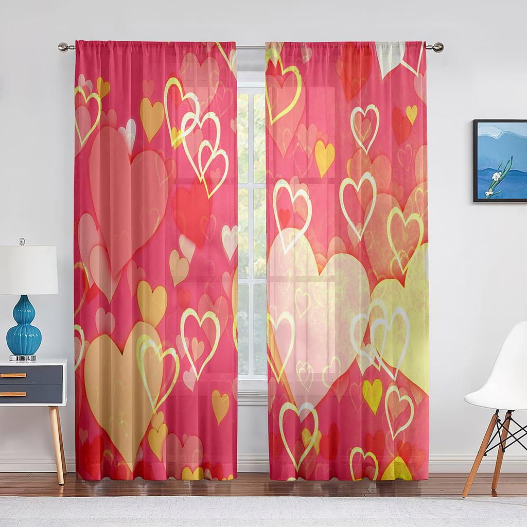 Valentine's Day with Love Hearts Pink Sheer Voile Curtains for Living Room Bedroom Kids Room Decor Tulle Window Treatment Drapes