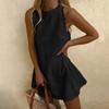 Women's Spring/Summer Solid Scalloped Trim Sleeveless Casual Dress