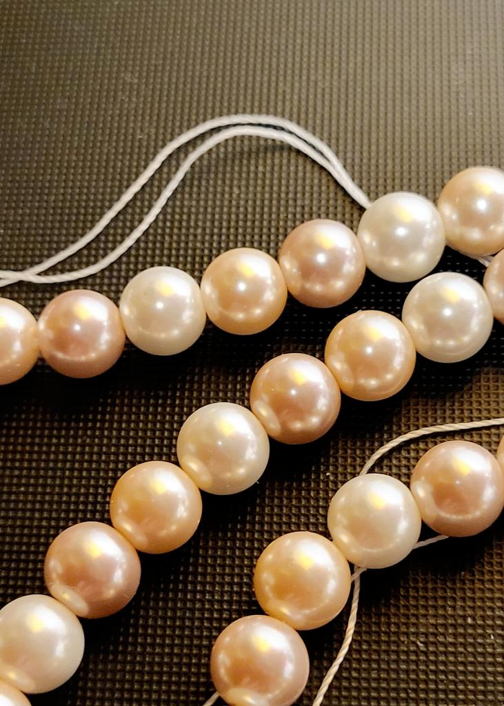 The beads are beautiful, like pearls. Even, smooth. Thank you!
