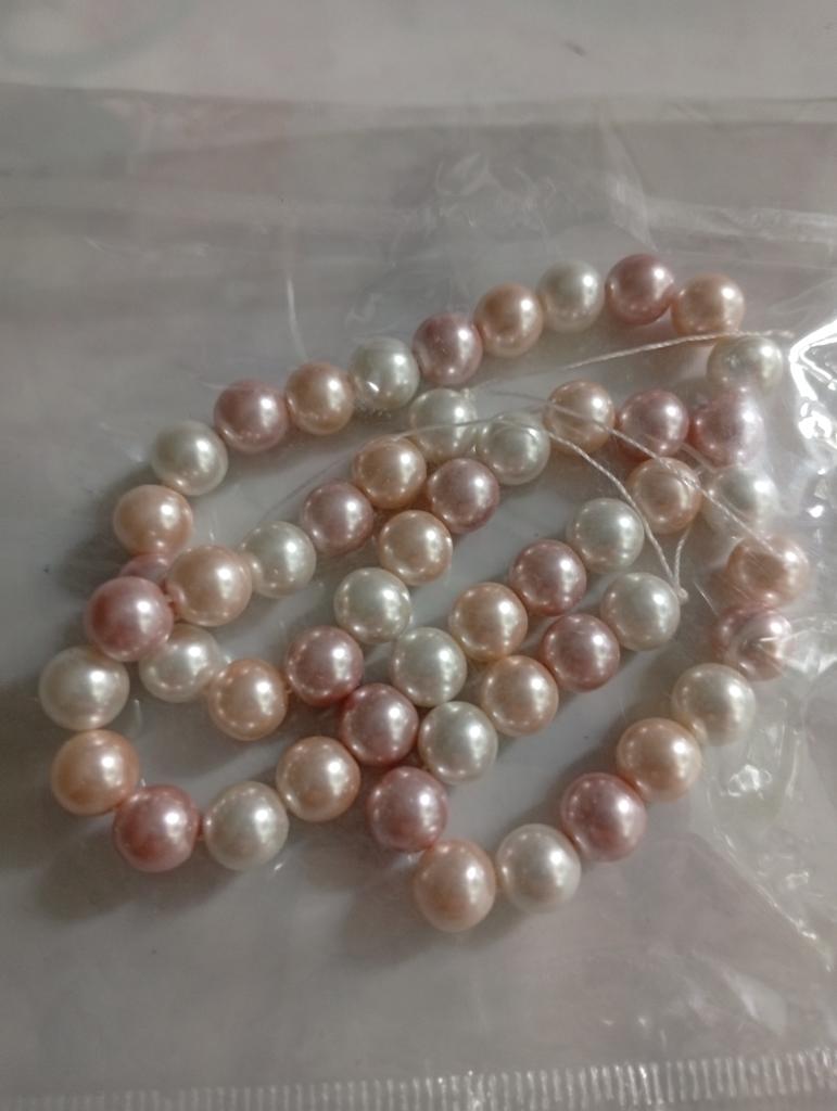 37 beads of multi-colored artificial pearls from shells. Beautiful