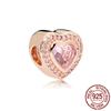 Fit Original Charm Bracelet Rose Gold Series Sparkling Leaf Heart Beads Hot Air Balloon S925 Sterling Silver DIY Jewelry
