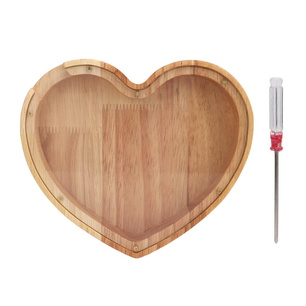 Heart Shaped Storage Box Transparent Acrylic Panel Wooden Display Case for Jewelry Coin Saving 20x18