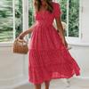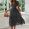 Women's Chiffon Summer Floral Dress Puff Sleeves A-Line Polka Dot Dress Skirts Tutu Puffy Skirt For Women Streetwear