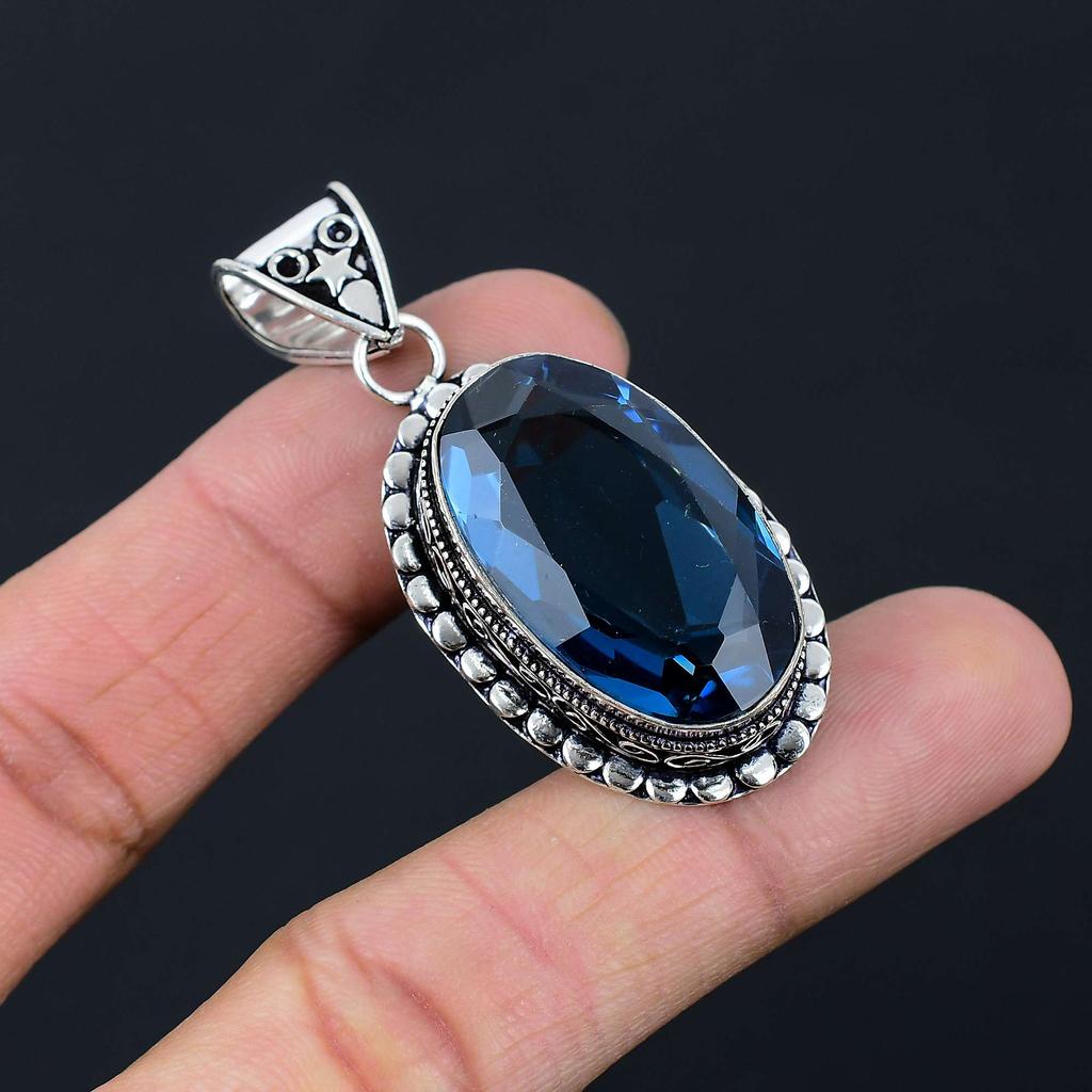 Blue Topaz Gemstone Pendant Solid 925 Sterling Silver Pendant Jewelry Gift For Unisex LG-049