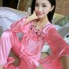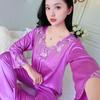 Pajama Women's Summer Ice Silk Long Sleeved Pants Two-piece Set Loose Oversized Lace Sexy Home Clothing Autumn