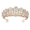 European Drop Green Red Crystal Tiaras Vintage Gold Color Rhinestone Pageant Crowns Comb Baroque Wedding Hair Accessories