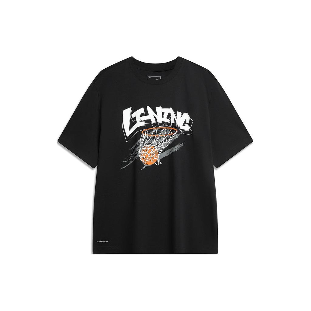 Li-Ning Cool Tea Quick-Dry Sports T-Shirt With Letter Print Crew Neck Pullover Casual Short Sleeve Drop Shoulder Men Tops Black AHSU671-1