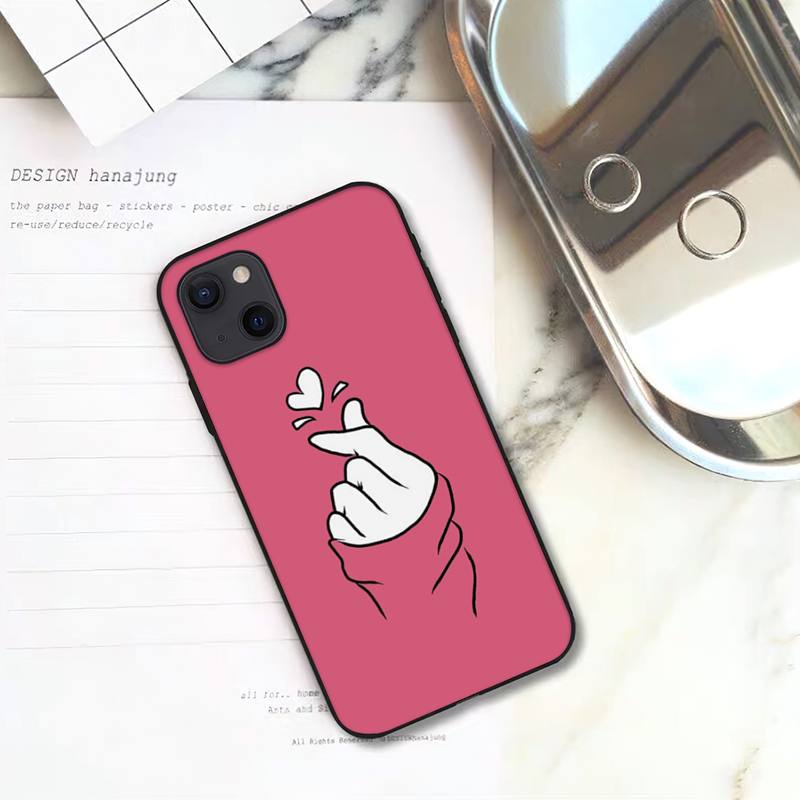Love On the Finger Kpop Heart Phone Case For iPhone 11 12 Mini 13 14 Pro XS Max X 8 7 6s Plus 5 SE XR Shell