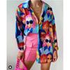 Plus Size Spring and Autumn Women's Shirt Casual Printed Mid-Length Long Sleeve Top