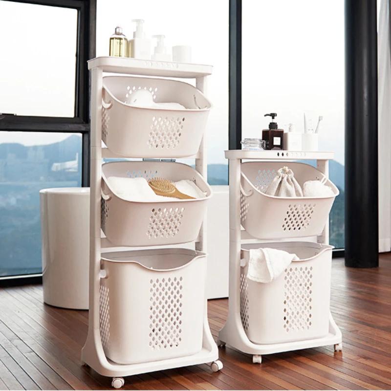 2/3 Layers Bathroom Dirty Clothes Storage Basket Movable PP Plastic Laundry Basket with Wheels