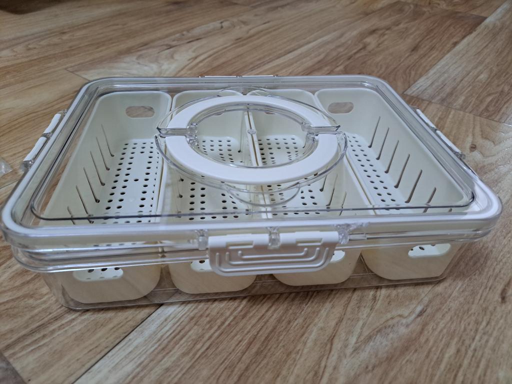 1PC PET Preservation Box with Lid and Handle Divided Serving Tray Refrigerator Frozen Storage Box Kitchen Seasoning Containers
