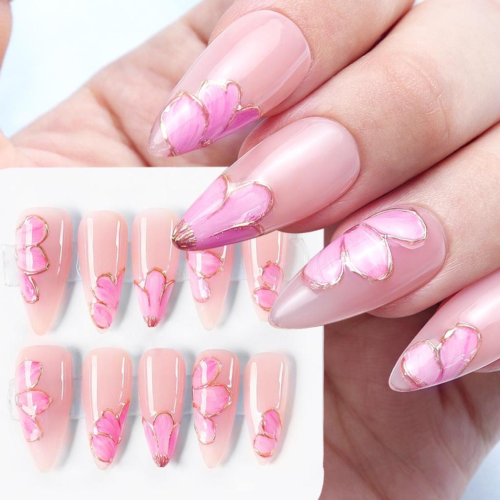 10Pcs Handmade Nails Set Press On Long Almond False Nail High Luxury Minimalist Style Design Reusable Full Cover Fake Nail Tips