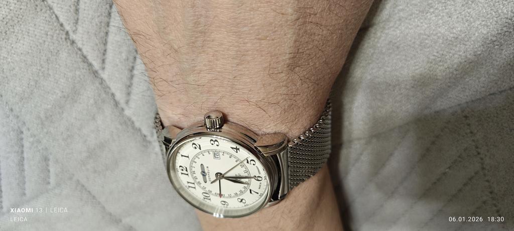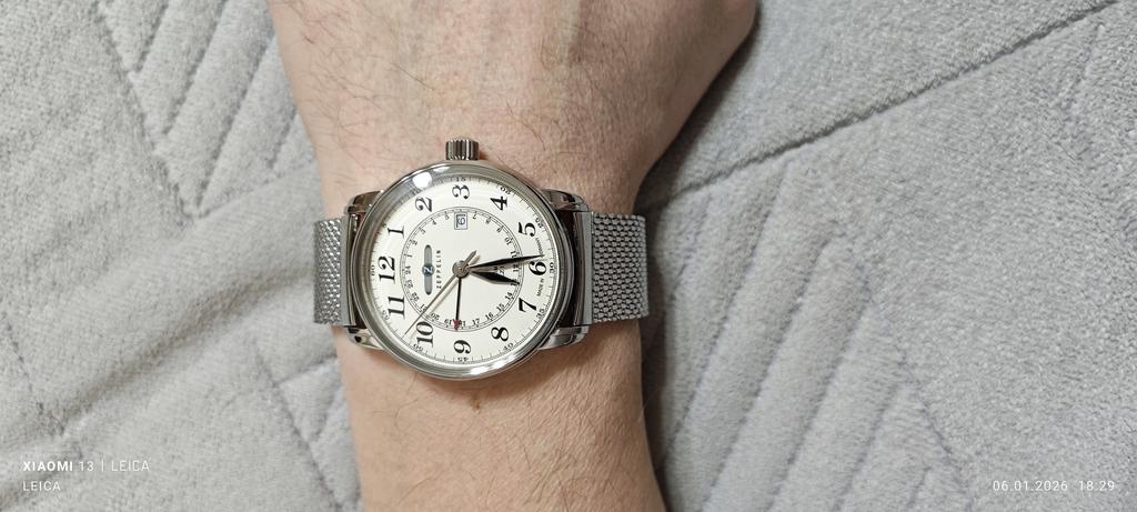 ZEPPELIN LZ127 Graf GMT Stainless Steel Beige Dial Quartz Z7642M5 Men's Watch