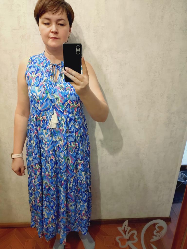 A wonderful light dress. It fit well on my 106-90-106. I chose according to the size chart. Didn't make a mistake. If it shrank after washing, it was by the smallest amount. I recommend it!