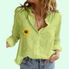 Women Fashion Lapel Neck Long Sleeve T-shirt Summer&fall Casual Printed Cotton Linen Top Female Loose Buttoned Blouses