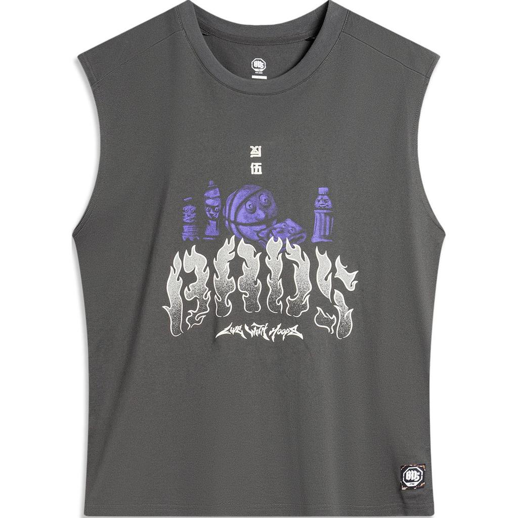 Li-Ning Badfive Basketball Series Printed Casual Breathable Comfortable Loose Knit Vest Men Tops Obsidian-Gray AVSU461-2