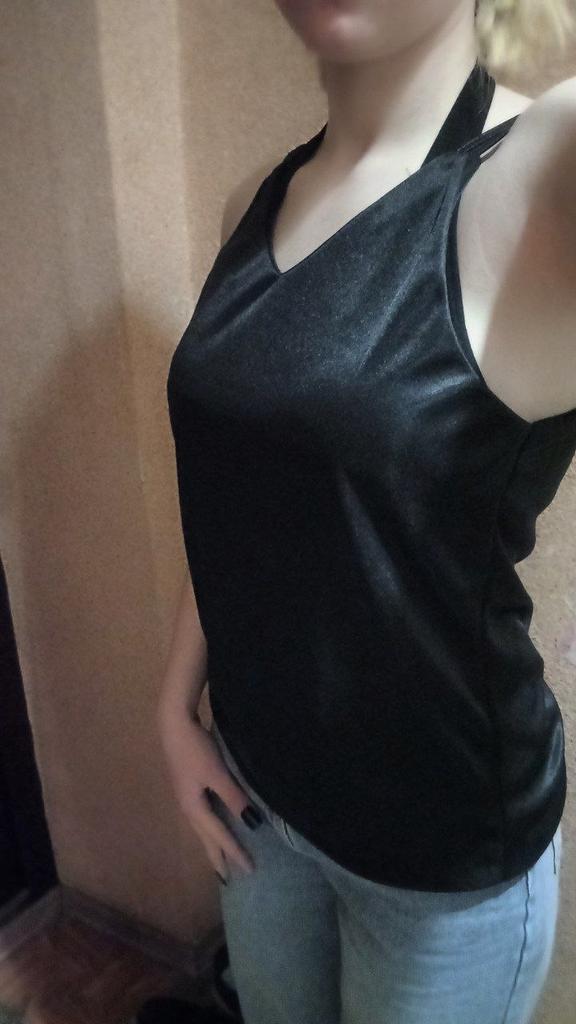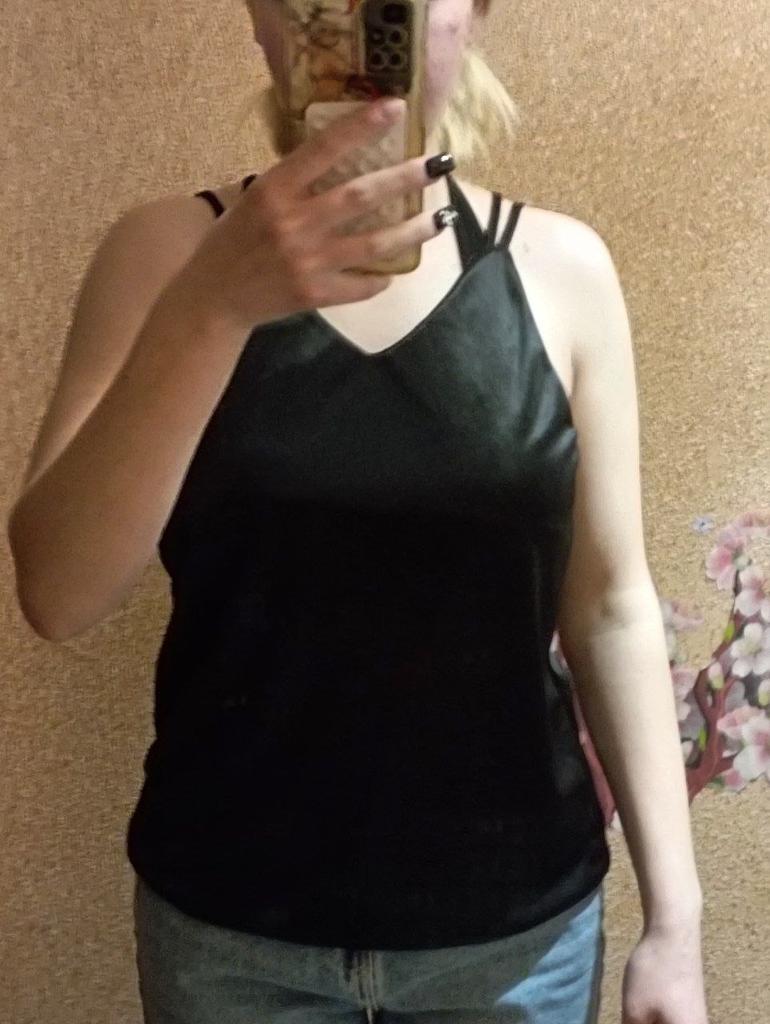 I've been looking for a top like this for a long time. The fabric is like satin, two comfortable straps that don't fall off the shoulder. Size 48-50. Thank you!
