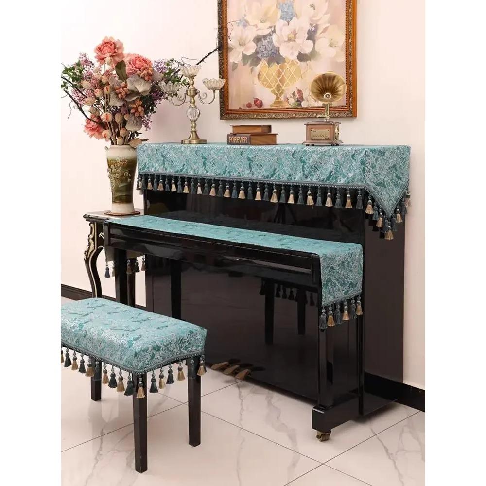 Hanging Bead Tassel Piano Half Cover Relief Jacquard Piano Key Dustproof Towel Electronic Keyboard Protective Case Bench Cushion
