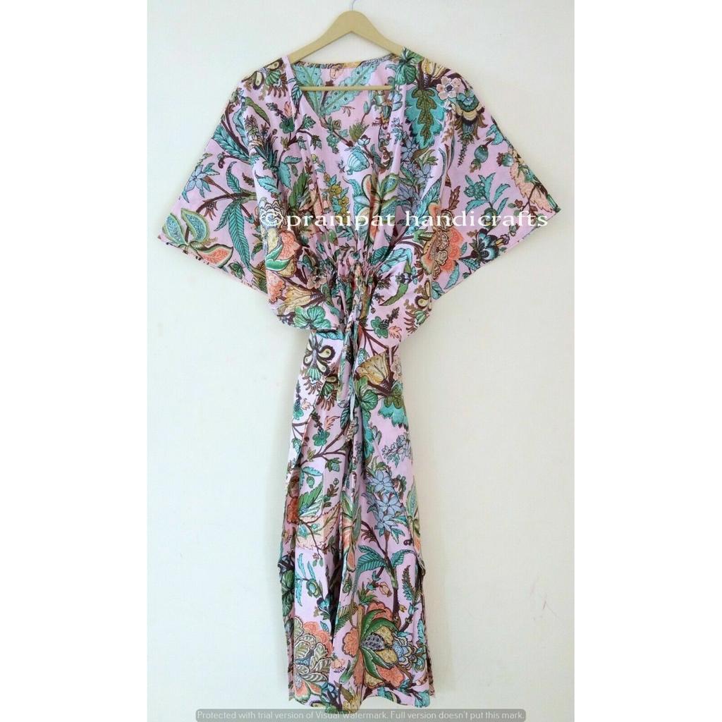 Indian Pink Long Floral Print Cotton Plus Size Maxi Women Cover Up Caftan Dress CKFTN-SCRN-FULL-BUYIT-047