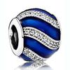 Wintry Delight Snowflake Ball Blue Swirls Pearlescent Dreams Charm S925 Sterling Silver Beads Fit Bracelet DIY Jewelry